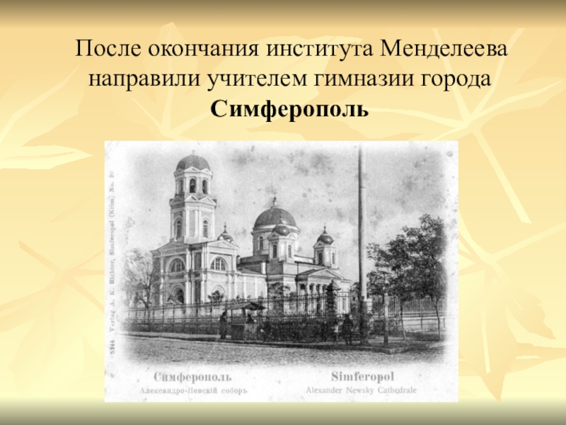 После окончания института Менделеева направили учителем гимназии города Симферополь