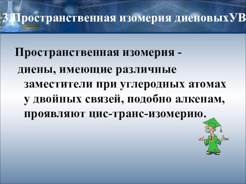 В молекуле бутадиена единая 4-х электронная полностью делокализованная π-связь. Это называет-ся системой сопряжения.