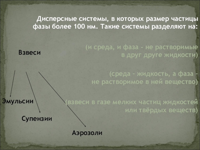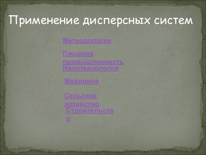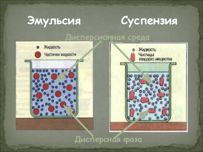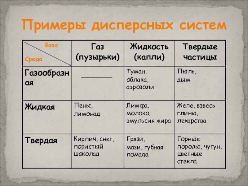 Дисперсными называют гетерогенные системы, в которых одно вещество в виде очень мелких частиц равномерно распределено в объёме другого