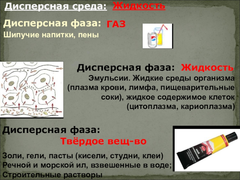 2. дисперсной фазы, играющей роль растворённого вещества.