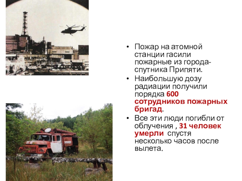 Слайд 10Пожар на атомной станции гасили пожарные из города-спутника Припяти.