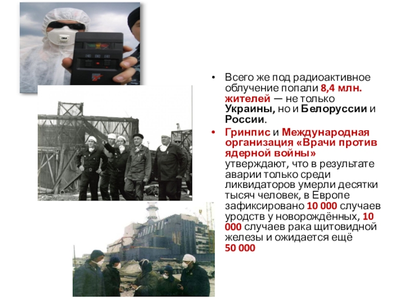 Слайд 19Всего же под радиоактивное облучение попали 8,4 млн. жителей — не