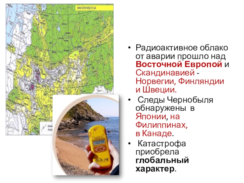 Слайд 9Радиоактивное облако от аварии прошло над Восточной Европой и Скандинавией