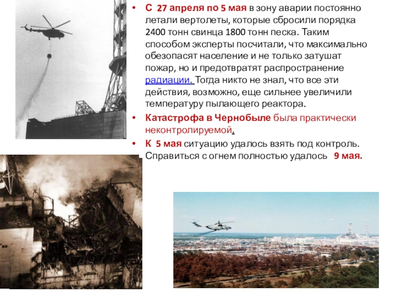 Слайд 7С 27 апреля по 5 мая в зону аварии постоянно летали