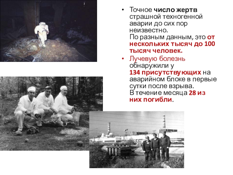 Слайд 17Точное число жертв страшной техногенной аварии до сих пор неизвестно.
