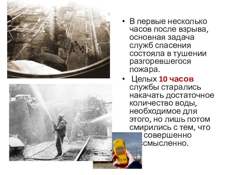 Слайд 6В первые несколько часов после взрыва, основная задача служб спасения состояла