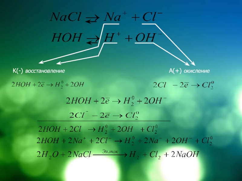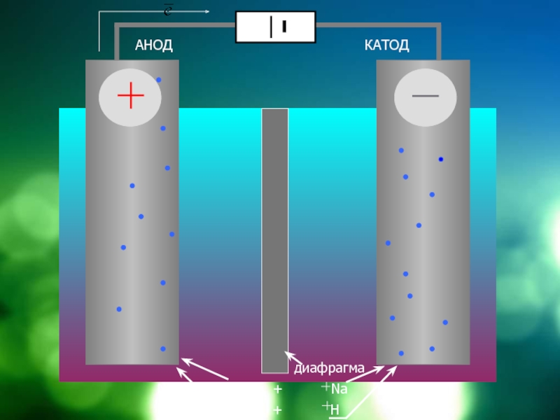 АНОДКАТОДдиафрагма NaCl  =  Cl    +      Na