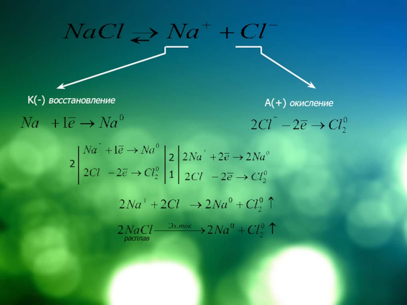 АНОДКАТОДдиафрагма   NaCl =  Cl  +  Na