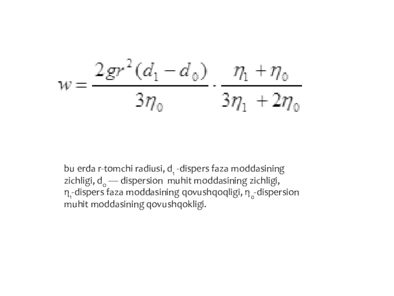 Слайд 18bu еrdа r-tоmchi rаdiusi, d1 -dispеrs fаzа mоddаsining zichligi, do —