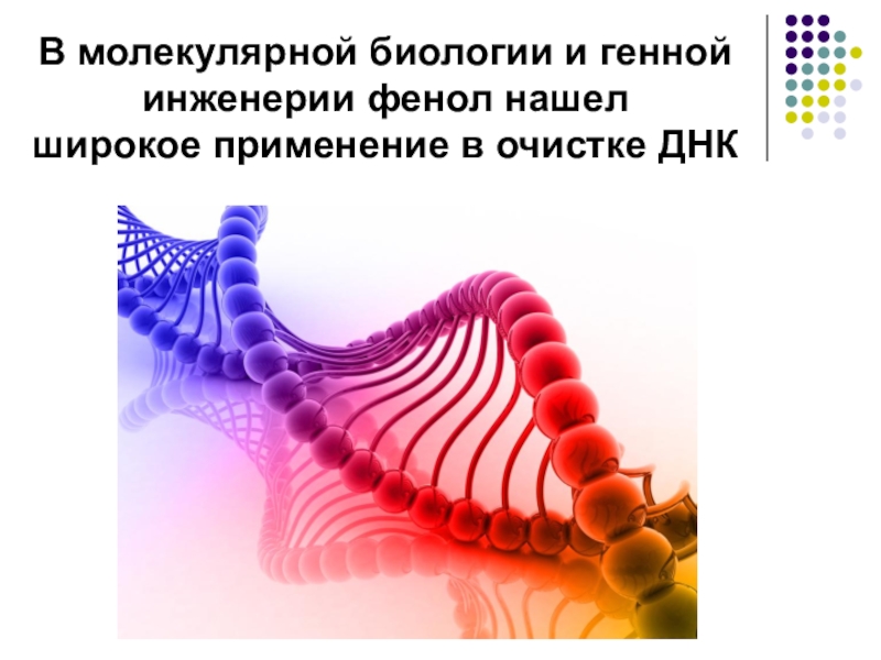 Слайд 22В молекулярной биологии и генной инженерии фенол нашел широкое применение в очистке