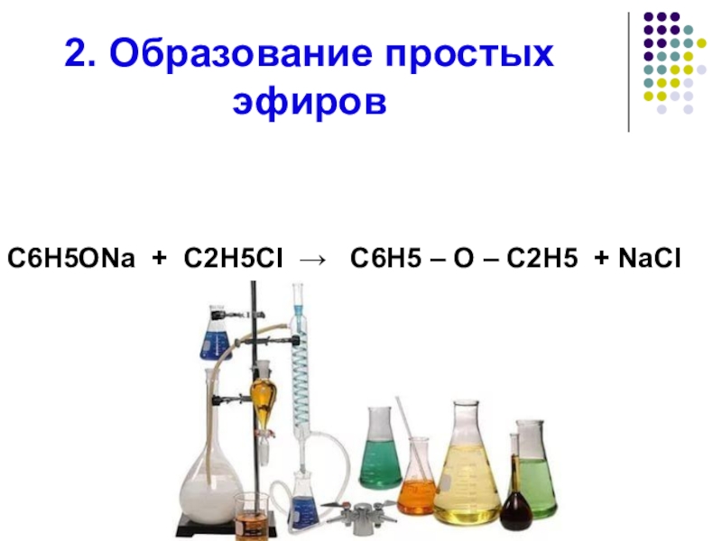 2. Образование простых эфировС6Н5ОNа  +  С2Н5СI  →   С6Н5 – О – С2Н5  + NаСI