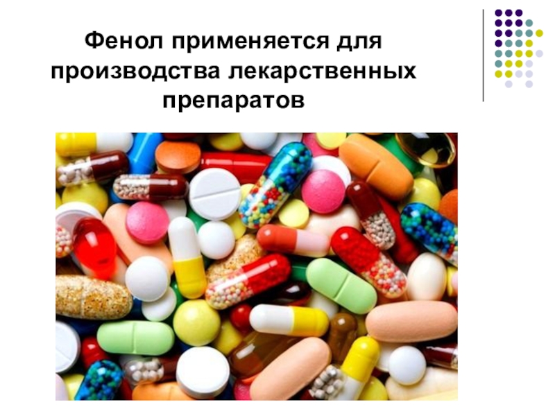 Слайд 18Фенол применяется для производства лекарственных препаратов