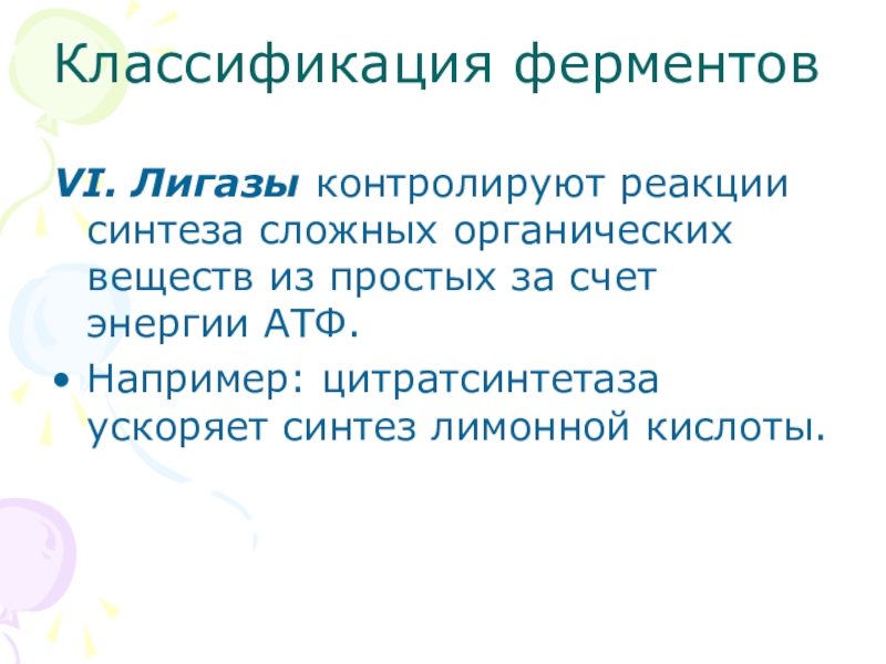 VI. Лигазы контролируют реакции синтеза сложных органических веществ из простых