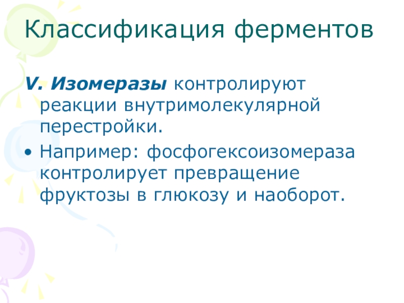 V. Изомеразы контролируют реакции внутримолекулярной перестройки.