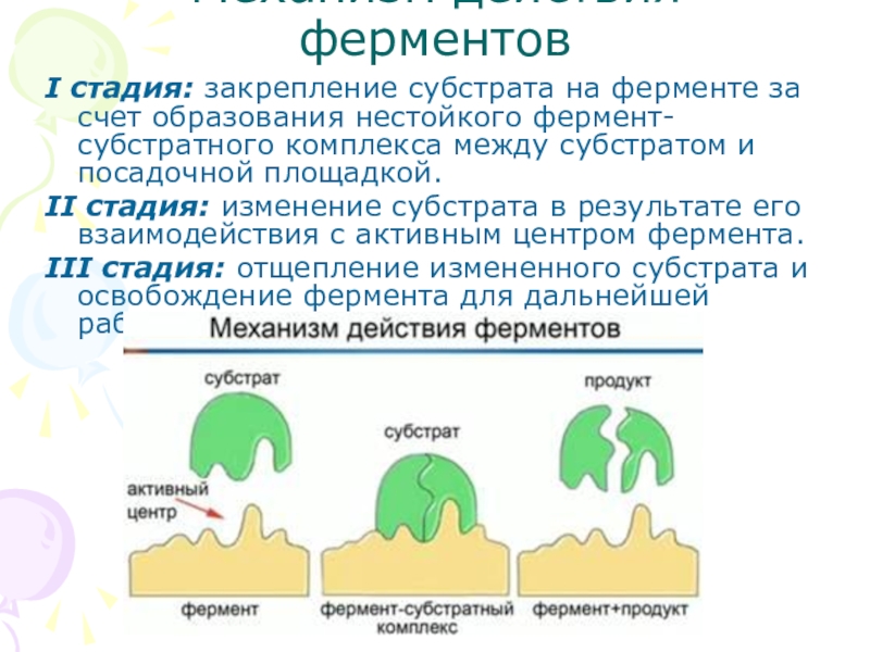 II стадия: изменение субстрата в результате его взаимодействия с активным центром фермента.