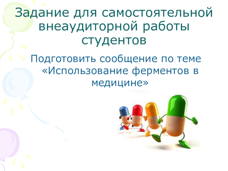 Слайд 25Подготовить сообщение по теме «Использование ферментов в медицине»