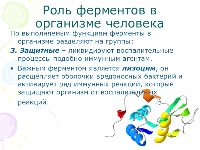 Важным ферментом является лизоцим, он расщепляет оболочки вредоносных бактерий и активирует ряд иммунных реакций, которые защищают организм от воспалительных реакций.