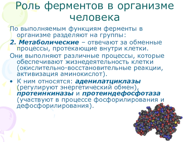 К ним относятся: аденилатциклазы (регулируют энергетический обмен), протеинкиназы и протеиндефосфотаза (участвуют в процессе фосфорилирования и дефосфорилирования).