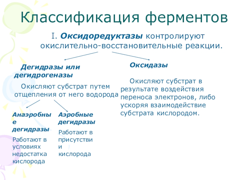 I. Оксидоредуктазы контролируют окислительно-восстановительные реакции.