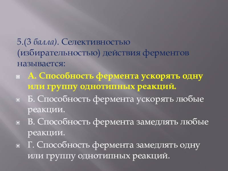 Например, пепсин наиболее активен при pH от 1,5 до 2,0; каталаза крови – при pH, равном 7,0