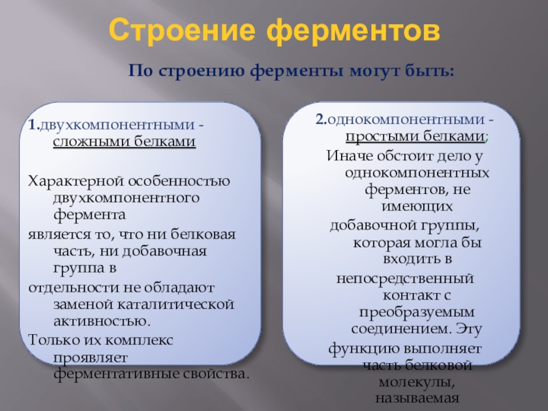 Иначе обстоит дело у однокомпонентных ферментов, не имеющих