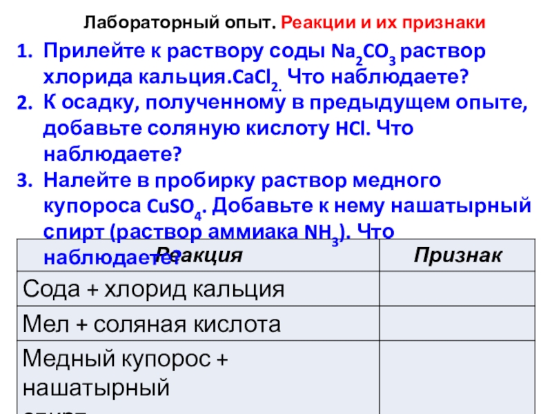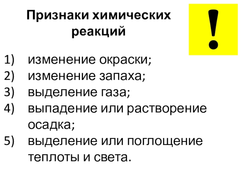 Признаки химических реакций