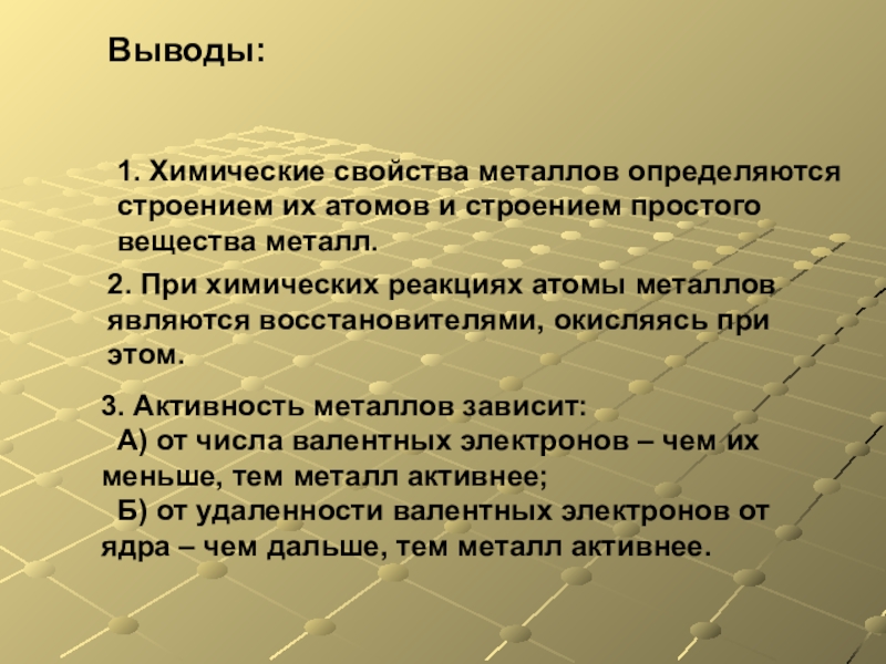 2. При химических реакциях атомы металлов являются восстановителями, окисляясь при этом.