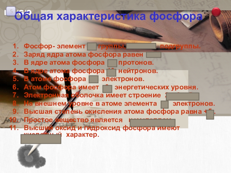 5. Фосфор образует простое вещество с молекулярной кристаллической решеткой,