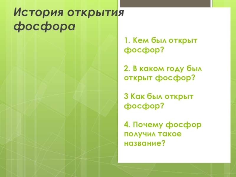 И лишь 1777 году К.В. Шееле разработал способ получения фосфора из рога и костей животных.