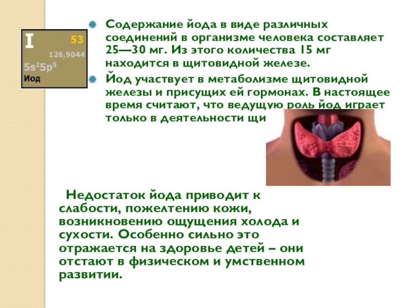 Недостаток йода приводит к слабости, пожелтению кожи, возникновению ощущения холода и сухости. Особенно сильно это отражается на здоровье детей – они отстают в физическом и умственном развитии.