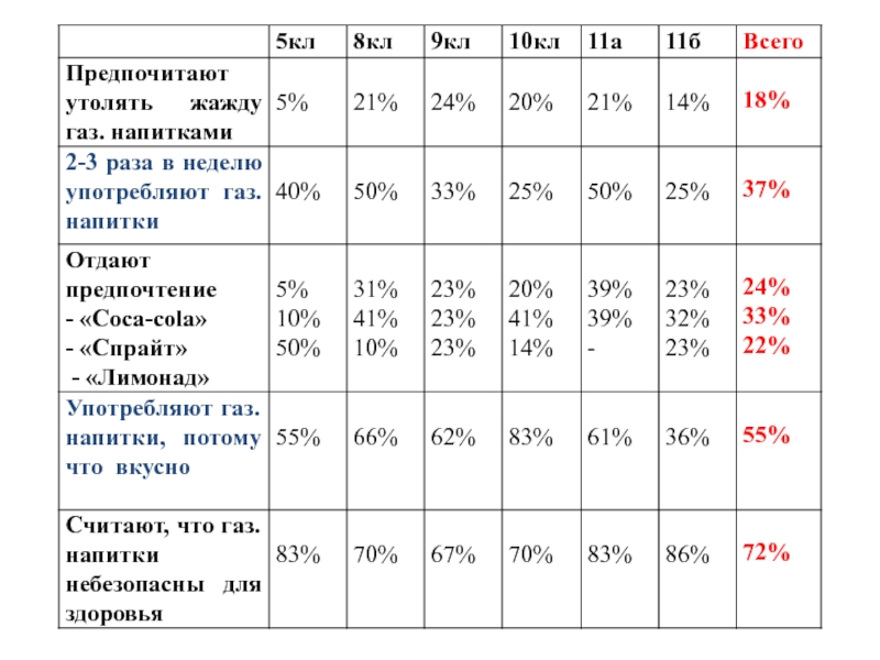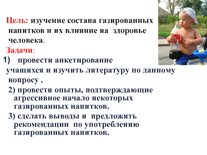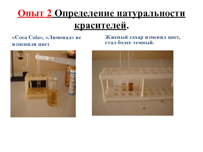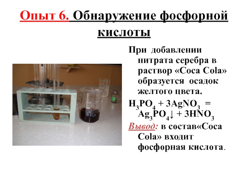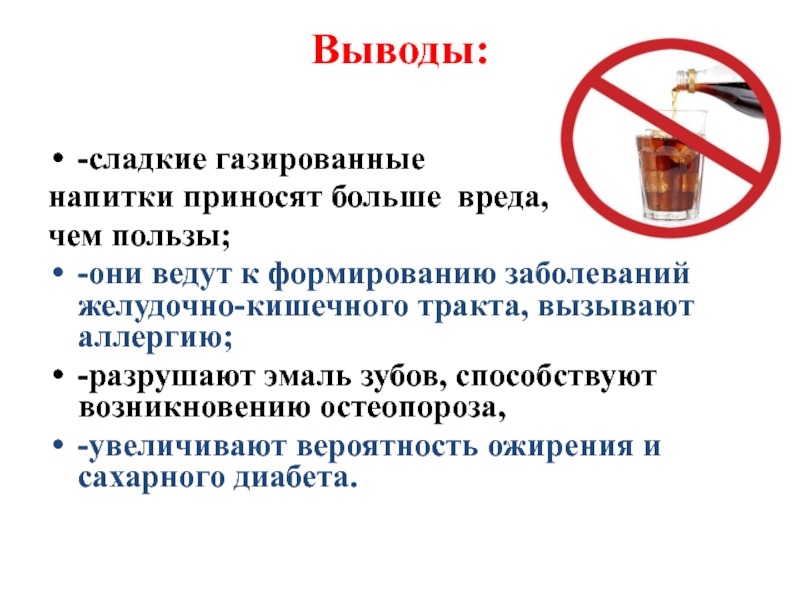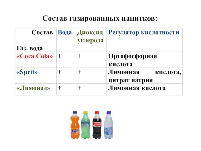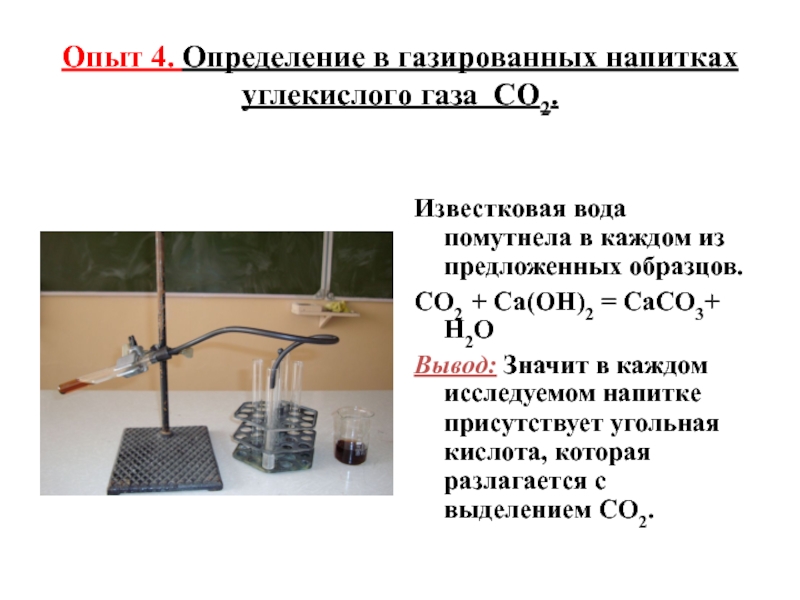 Вывод: Значит в каждом исследуемом напитке присутствует угольная кислота, которая разлагается с выделением СО2.