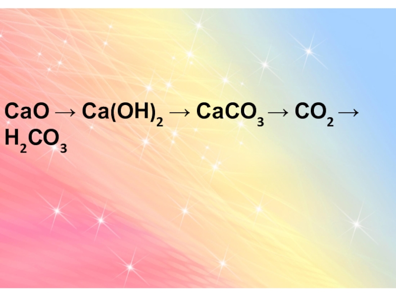 Слайд 7СаО → Са(ОН)2 → СаСО3 → СО2 → Н2СО3