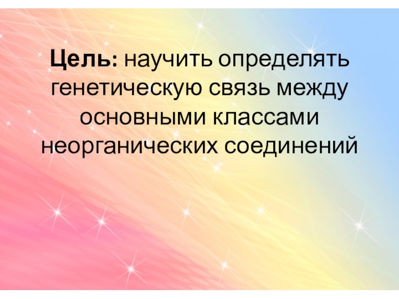 Цель: научить определять генетическую связь между основными классами неорганических соединений