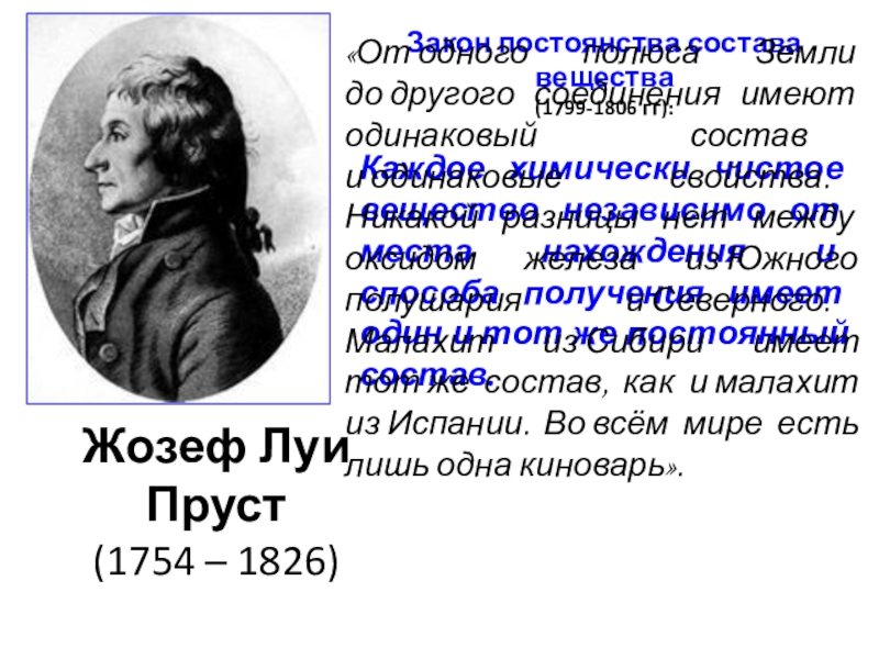 «От одного полюса Земли до другого соединения имеют одинаковый состав и одинаковые свойства. Никакой разницы нет между оксидом железа из Южного полушария и Северного. Малахит из Сибири имеет тот же состав, как и малахит из Испании. Во всём мире есть лишь одна киноварь».