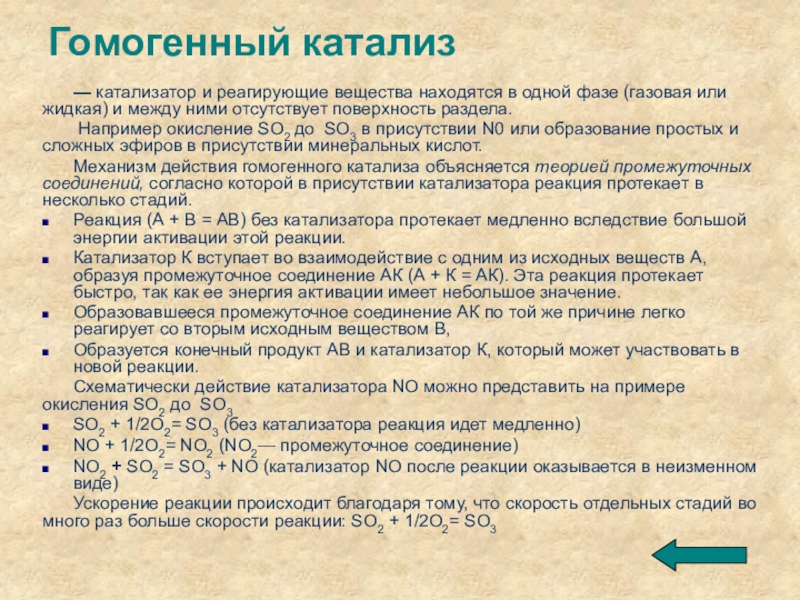 Поверхность катализатора неоднородна. Полагают, что на ней существуют активные центры, на которых главным образом и протекают каталитические реакции. При этом реагирующее вещество, например водород, адсорбируется на этих центрах, в результате чего у адсорбированных молекул ослабевают связи между атомами и увеличиваются расстояния они становятся более реакционноспособными. Для того чтобы реакция началась, потребуется меньшая энергия активации, чем для той же реакции, но без катализатора