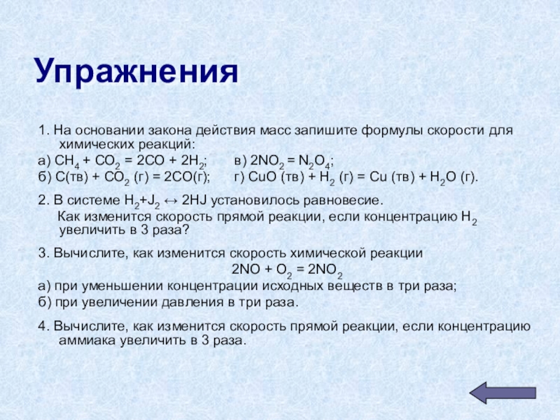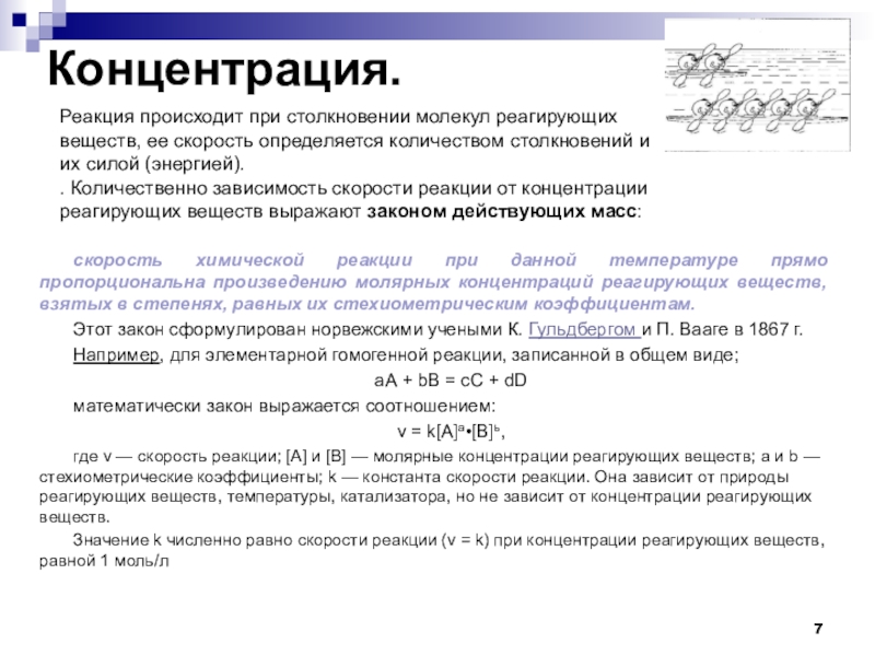. Количественно зависимость скорости реакции от концентрации реагирующих веществ выражают законом действующих масс: