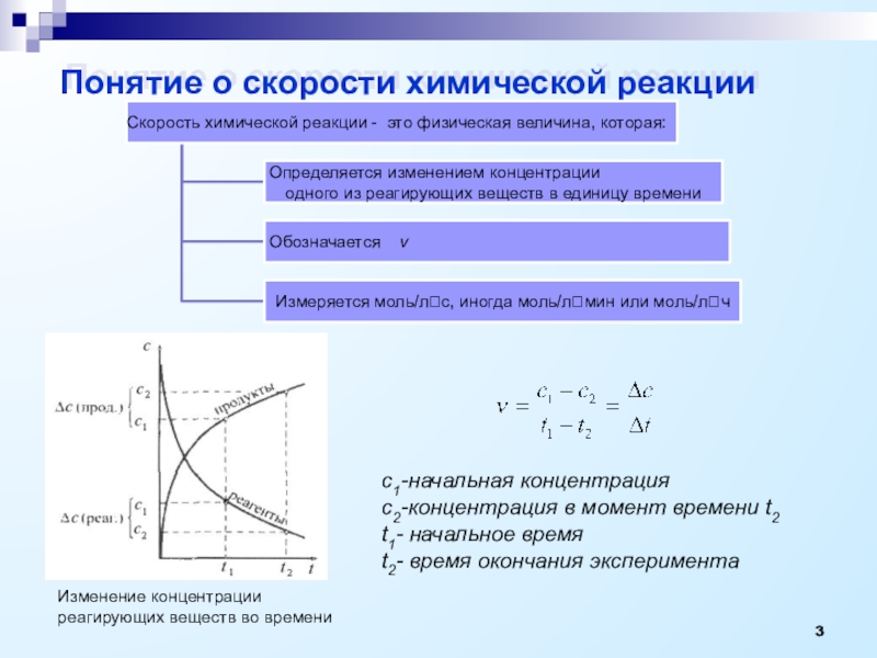 Изменение концентрации реагирующих веществ во времени