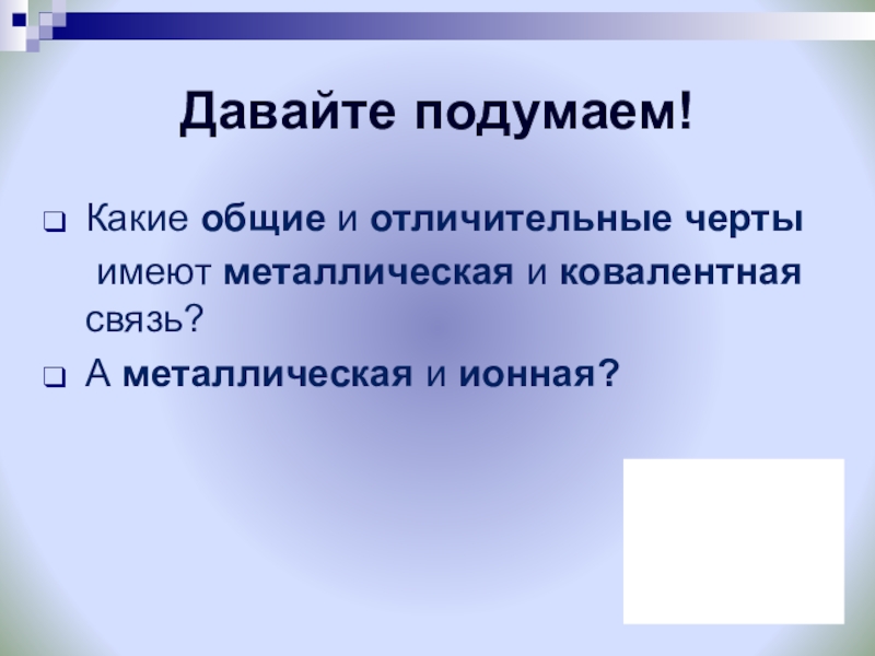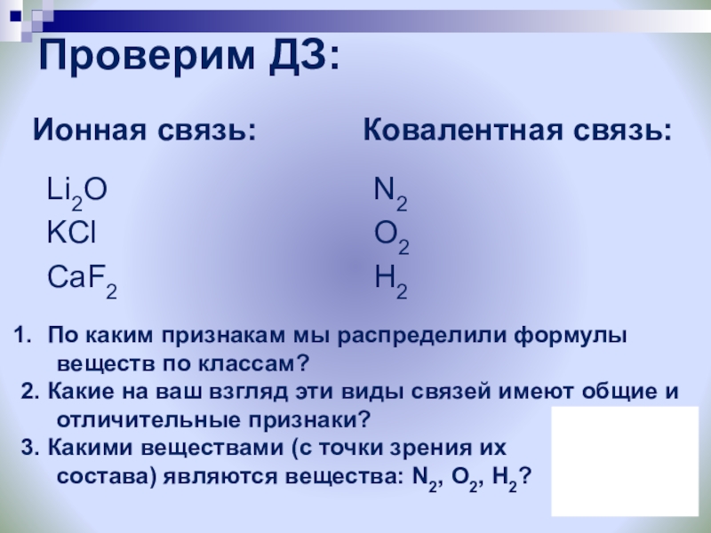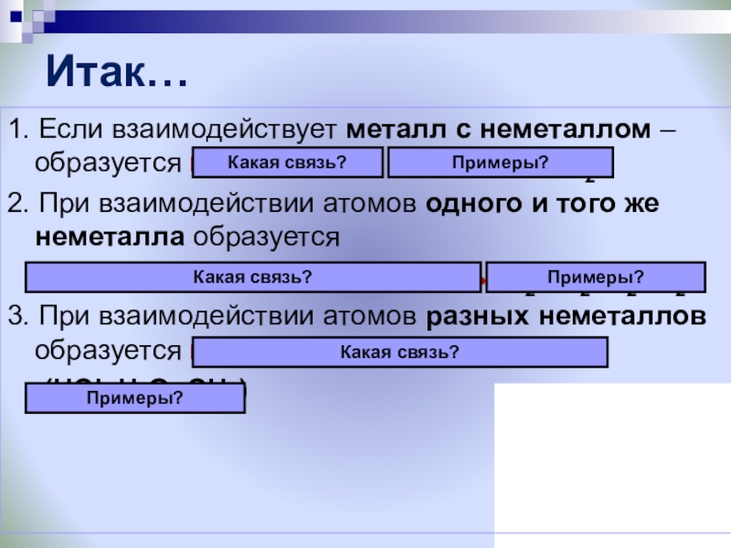 1. Если взаимодействует металл с неметаллом – образуется ионная связь (