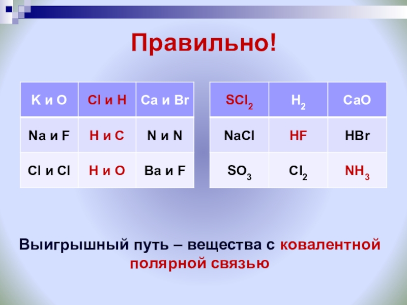 Выигрышный путь – вещества с ковалентной