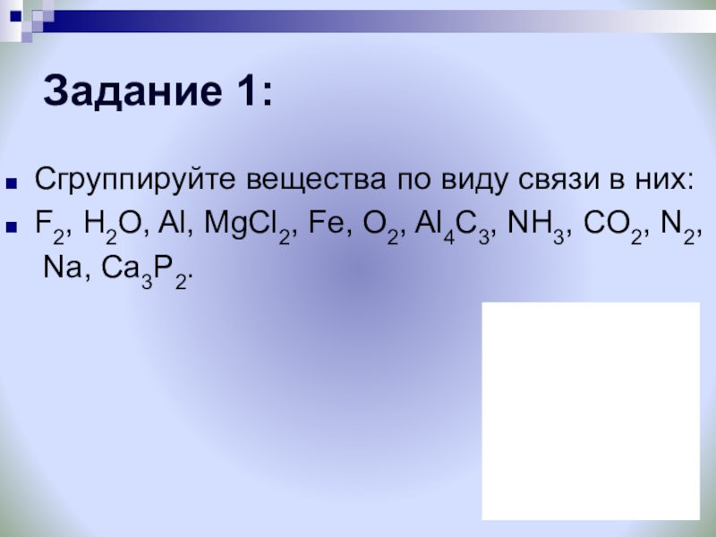 Сгруппируйте вещества по виду связи в них: