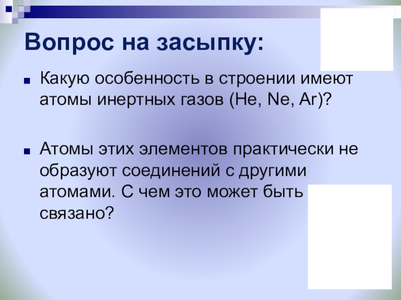 Какую особенность в строении имеют атомы инертных газов (He,