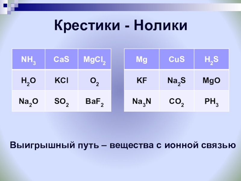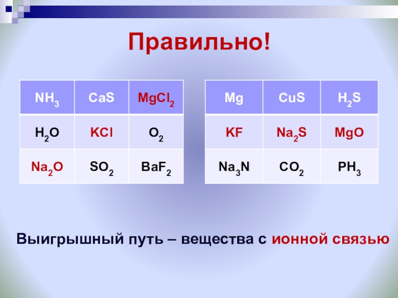 Выигрышный путь – вещества с ионной связью