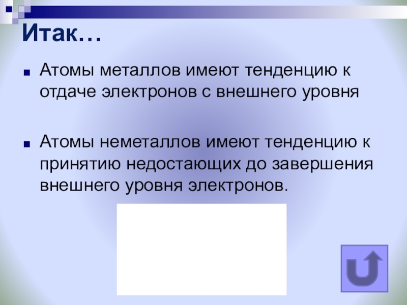 Атомы металлов имеют тенденцию к отдаче электронов с внешнего уровня