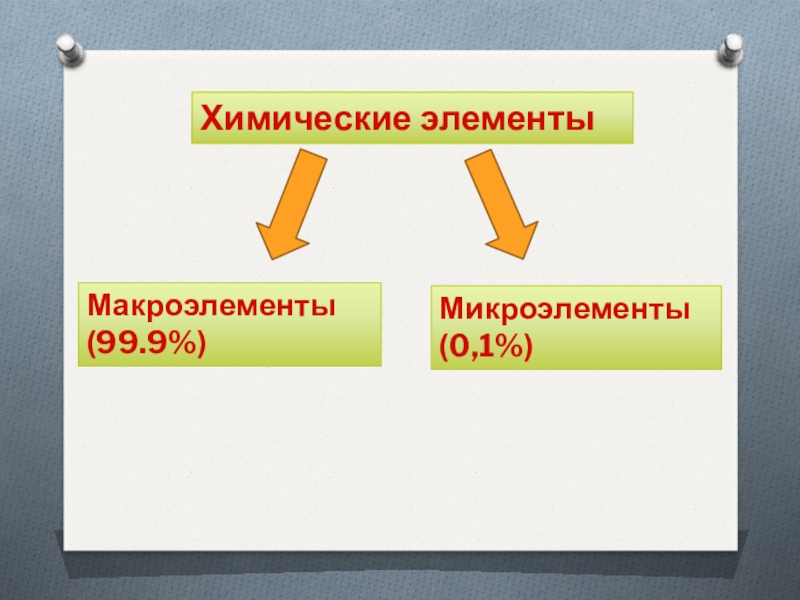 Химические элементыМакроэлементы (99.9%)Микроэлементы (0,1%)