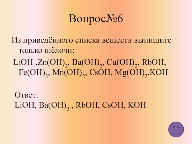 LiOH, Ba(OH)2 , RbOH, CsOH, KOH