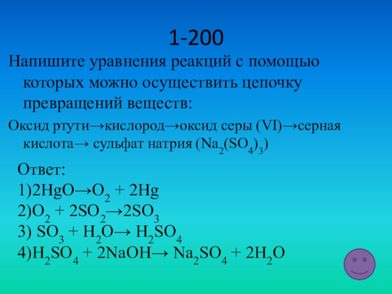 4)H2SO4 + 2NaOH→ Na2SO4 + 2H2O