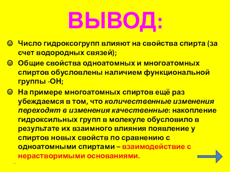 ХИМИЧЕСКИЕ СВОЙСТВА МНОГОАТОМНЫХ СПИРТОВ: