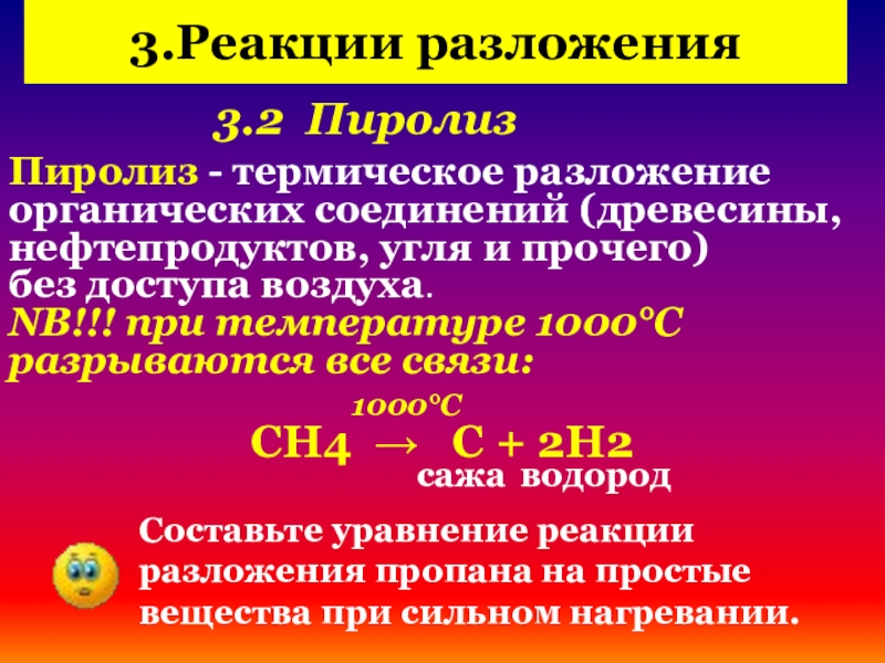 Составьте уравнение реакции разложения пропана на простые вещества при сильном нагревании.