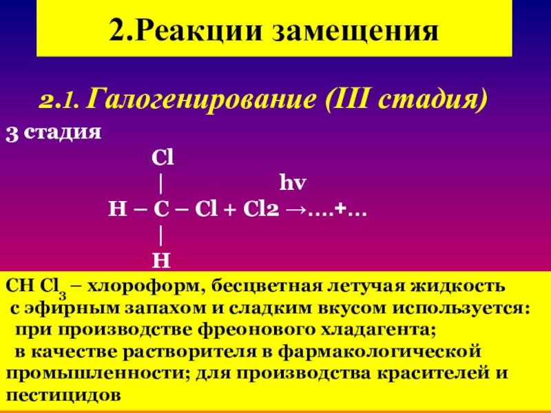 СН Cl3 – хлороформ, бесцветная летучая жидкость