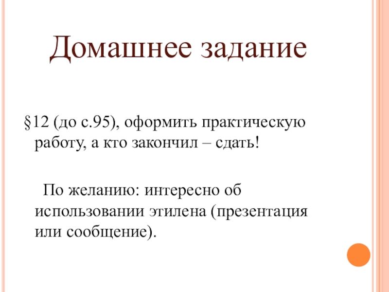 По желанию: интересно об использовании этилена (презентация или сообщение).